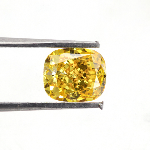 인증 인상적인 강렬한 노란색 쿠션 컷 CVD/HPHT 실험실 다이아몬드